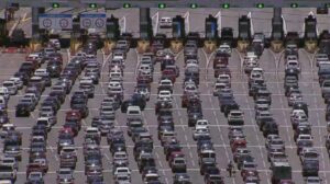Fila de espera da balsa entre Ilhabela e São Sebastião na manhã deste domingo (23)