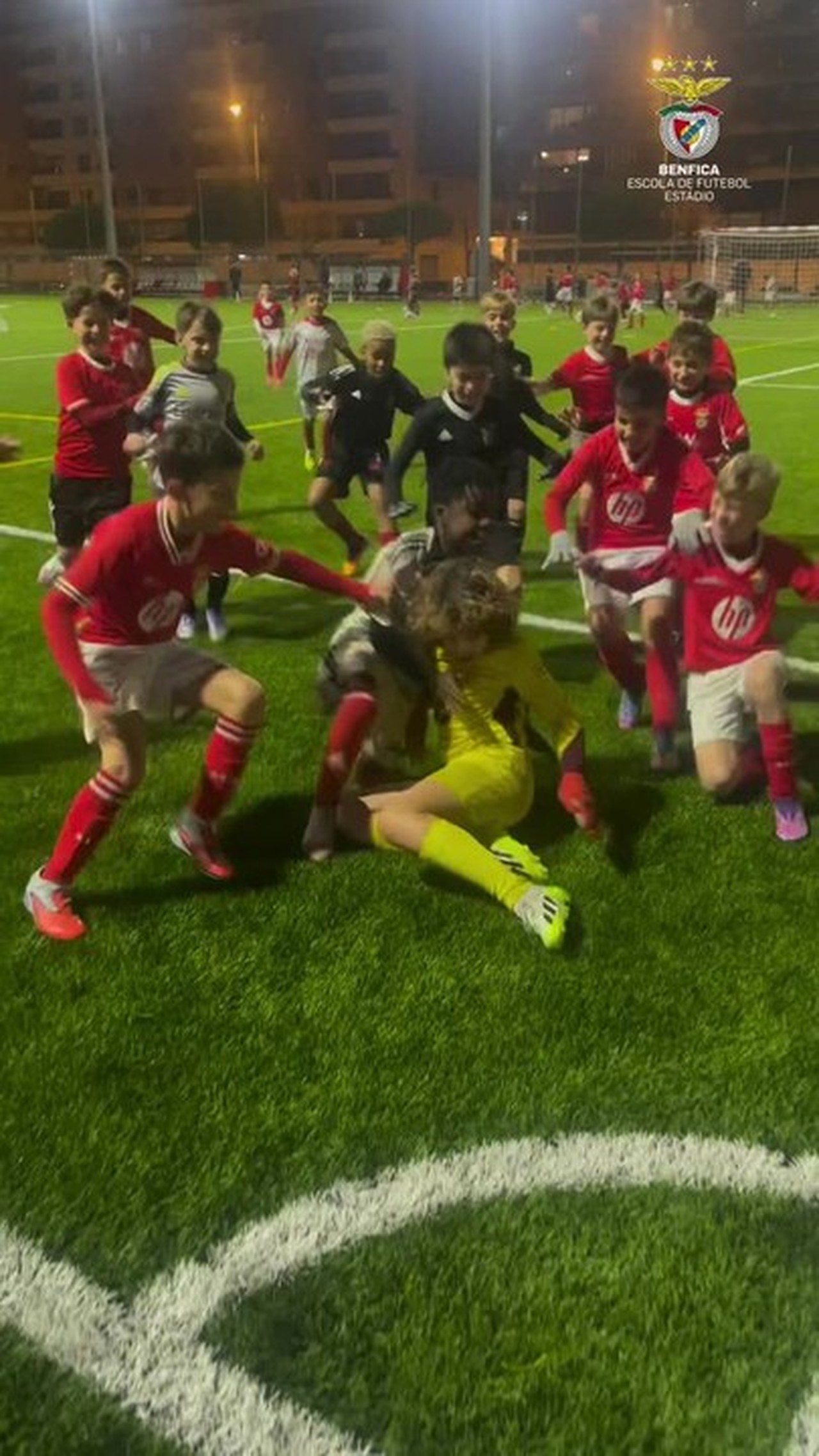 Gol de goleiro do Benfica sobre o Real vira camisa, e crianças de escolinha reeditam cena; veja