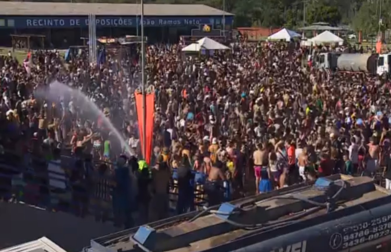 A atração é bastante conhecida por usar mangueiras para jogar água nos foliões, que se divertem e se refrescam.