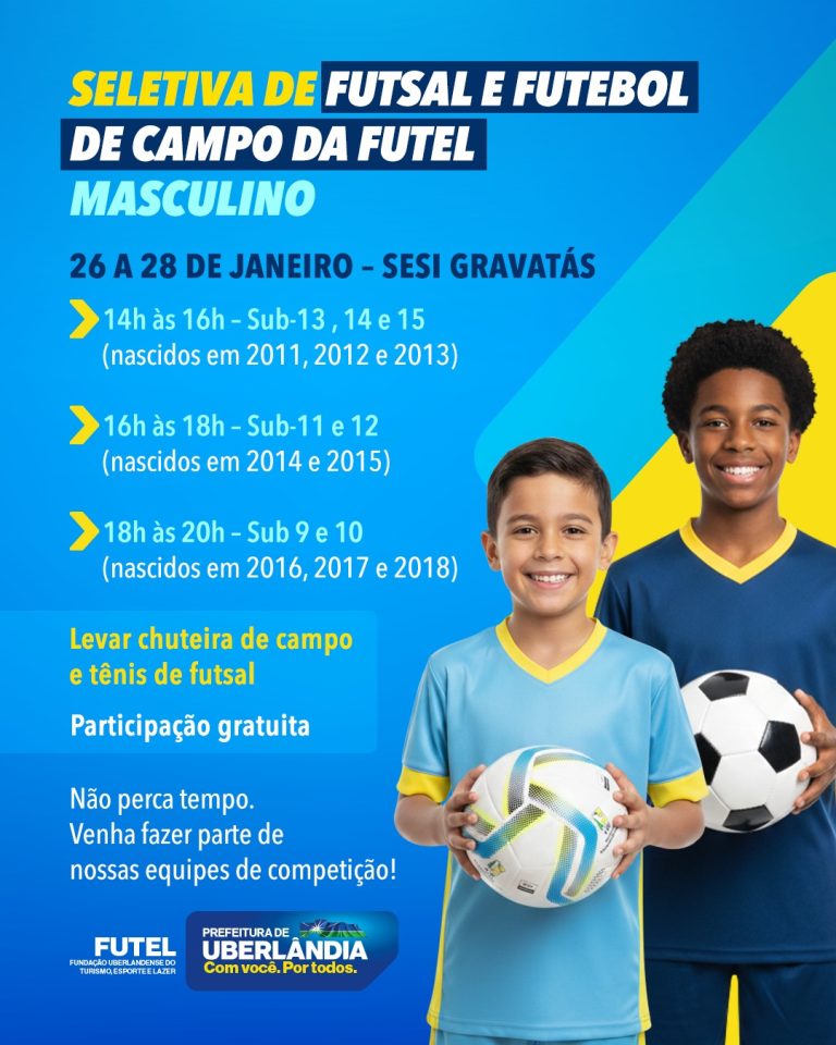 • Prefeitura promove seletiva de futebol e futsal entre 26 e 28 de janeiro