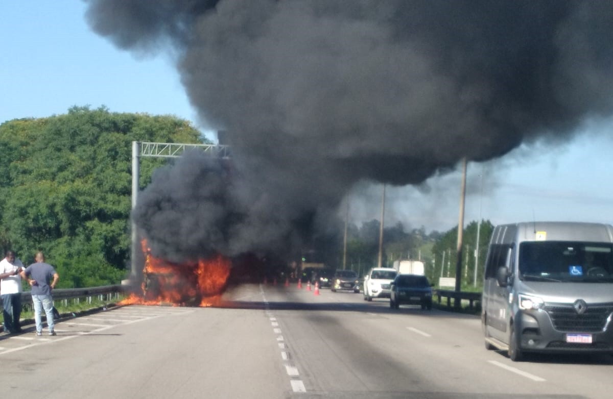 Caminhão pega fogo e causa lentidão na Dutra, em Jacareí