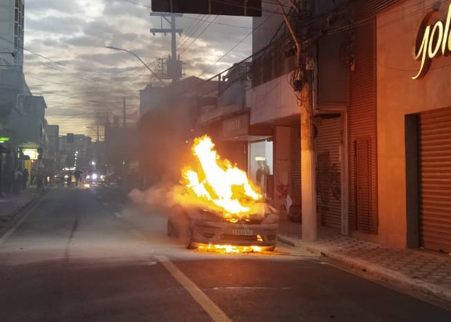 Um vídeo gravado por um comerciante mostra o carro parado na Rua XV de Novembro, próximo a diversos comércios, completamente incendiado (veja as imagens acima).